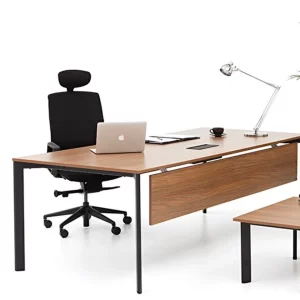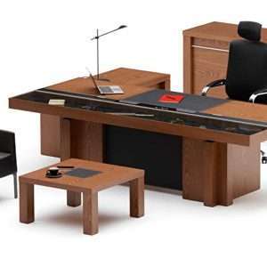 Theo executive desk reflects the weight of wood to the executive rooms while adding elegance to the environment with its details built on plain forms and its eclectic structure. The glass-covered, integrated unit next to the table allows the user to display items that nourish his collector spirit and creates private spaces where he expresses himself and connects with the working environment.